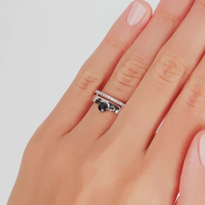 Кольцо с 21 бриллиантом природным, 0.08 карат, огранка круг 17 граней, цвет 2, чистота 2, тип огранки Б; 1 сапфиром природным, 0.33 карат, цвет 2, чистота 2, тип огранки В; Белое золото 585 пробы.
