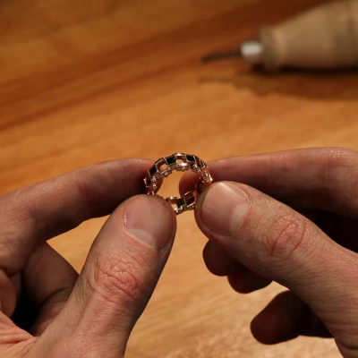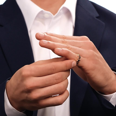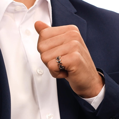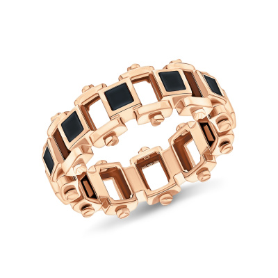 Кольцо с 11 ониксами черными природными; Розовое золото 585 пробы.