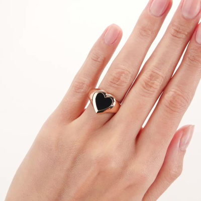 Кольцо с 1 ониксом черным природным, 1.86 карат; Розовое золото 585 пробы.