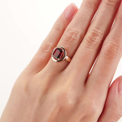 Кольцо с 1 гранатом природным, 1.85 карат; Розовое золото 585 пробы.