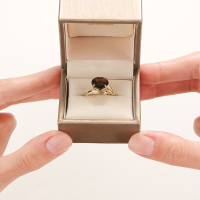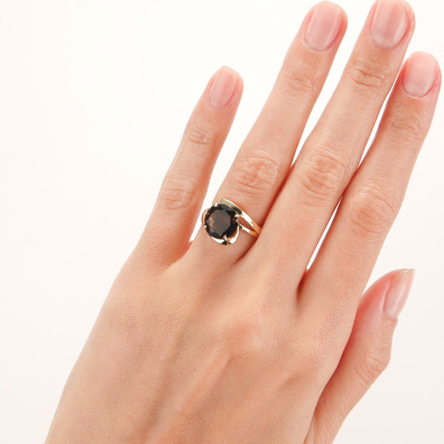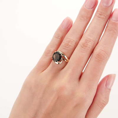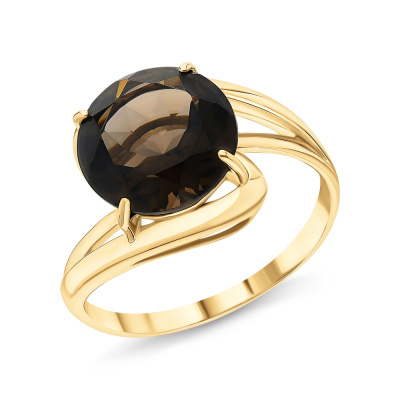 Кольцо с 1 кварцем дымчатым природным, 3.15 карат; Желтое золото 585 пробы.