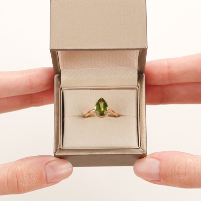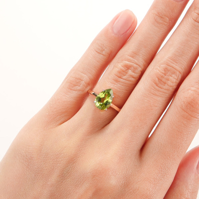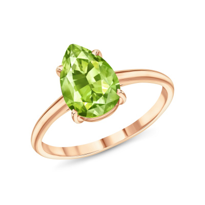 Кольцо с 1 хризолитом природным, 2.1 карат; Розовое золото 585 пробы.