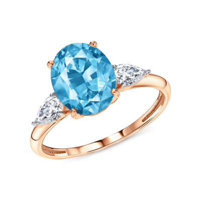 Кольцо с 1 топазом свисс природным, 2.63 карат; 2 кварцами бесцветными природными, 0.34 карат; Розовое золото 585 пробы.