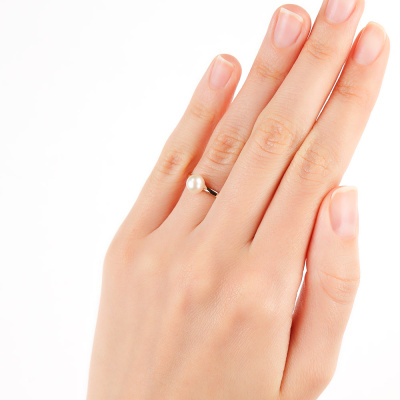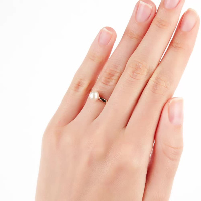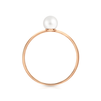 Кольцо с 1 жемчугом пресноводным культивированным белым, 1.75 карат; Розовое золото 585 пробы.