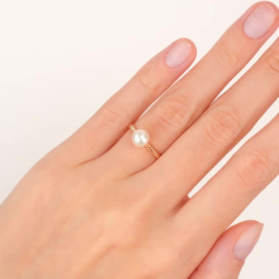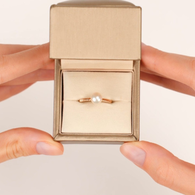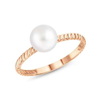 Кольцо с 1 жемчугом пресноводным культивированным белым, 1.68 карат; Розовое золото 585 пробы.