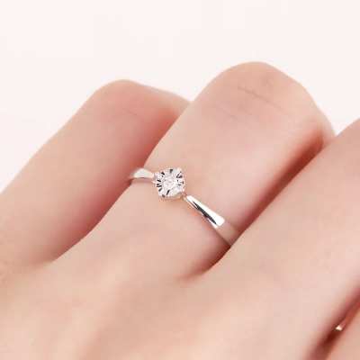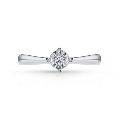 Кольцо с 1 бриллиантом природным, 0.03 карат, огранка круг 57 граней, цвет 3, чистота 6, тип огранки А; Белое золото 585 пробы.