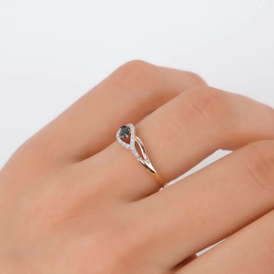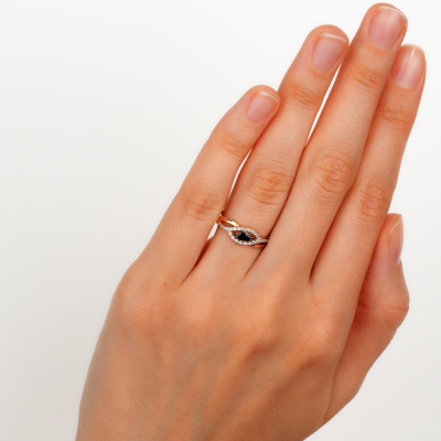 Кольцо с 22 бриллиантами природными, 0.07 карат, огранка круг 17 граней, цвет 2, чистота 2, тип огранки А; 1 сапфиром природным, 0.15 карат, цвет 2, чистота 2, тип огранки В; Розовое золото 585 пробы.