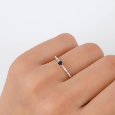 Кольцо с 14 бриллиантами природными, 0.04 карат, огранка круг 17 граней, цвет 2, чистота 2, тип огранки А; 1 сапфиром природным, 0.11 карат, цвет 2, чистота 2, тип огранки В; Розовое золото 585 пробы.