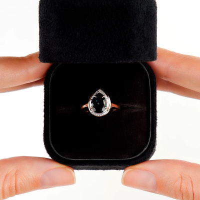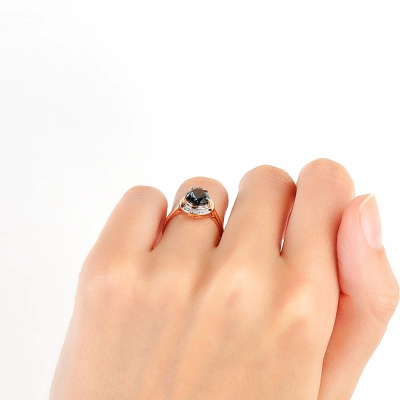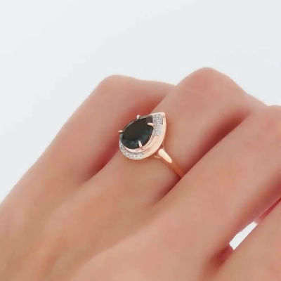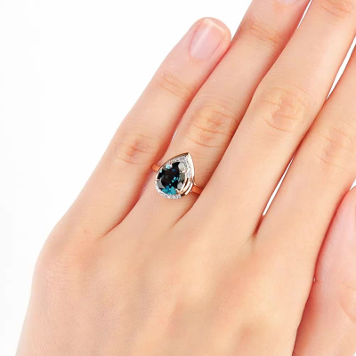 Кольцо с 16 бриллиантами природными, 0.03 карат, огранка круг 17 граней, цвет 2, чистота 2, тип огранки А; 1 топазом лондон природным, 1.88 карат; Розовое золото 585 пробы.
