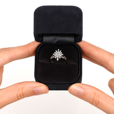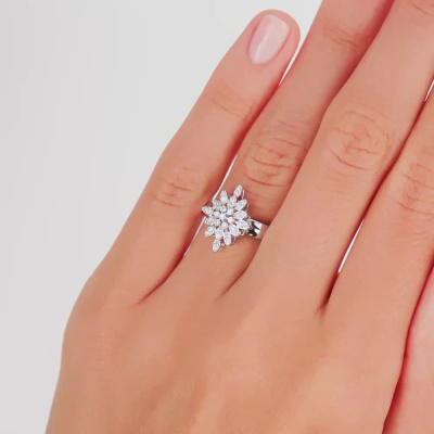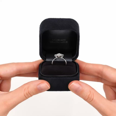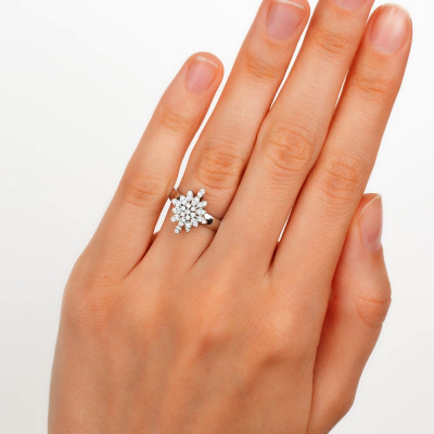 Кольцо с 7 бриллиантами природными, 0.05 карат, огранка круг 57 граней, цвет 3, чистота 6, тип огранки А; 28 бриллиантами природными, 0.12 карат, огранка круг 57 граней, цвет 3, чистота 6, тип огранки А; Белое золото 585 пробы.