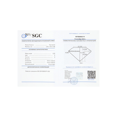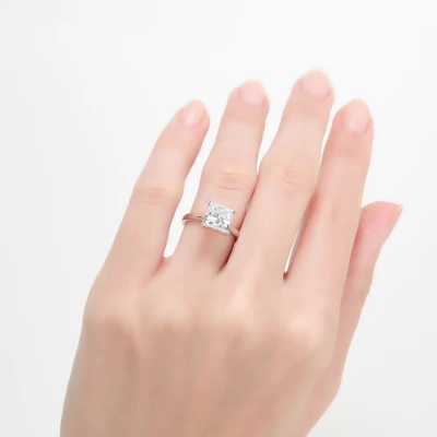 Кольцо с 1 бриллиантом выращенным, 2 карат, огранка принцесса 65 граней, цвет 2, чистота 4, тип огранки А; Белое золото 585 пробы.
