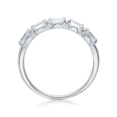 Кольцо с 5 бриллиантами выращенными, 1.18 карат, огранка изумрудная 65 граней, цвет 3, чистота 5, тип огранки А; Белое золото 585 пробы.