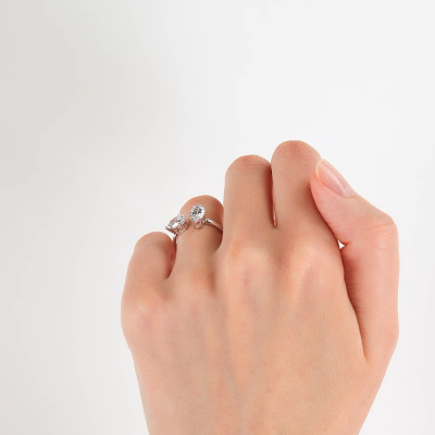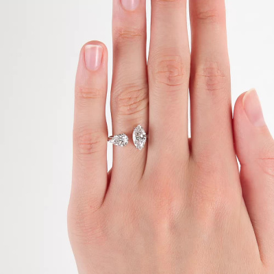 Кольцо с 1 бриллиантом выращенным, 1 карат, огранка маркиз 55 граней, цвет 4, чистота 5, тип огранки А; 1 бриллиантом выращенным, 0.63 карат, огранка груша 56 граней, цвет 4, чистота 5, тип огранки А; Белое золото 585 пробы.