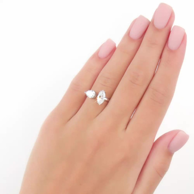 Кольцо с 1 бриллиантом выращенным, 1 карат, огранка маркиз 55 граней, цвет 4, чистота 5, тип огранки А; 1 бриллиантом выращенным, 0.64 карат, огранка груша 56 граней, цвет 4, чистота 5, тип огранки А; Белое золото 585 пробы.