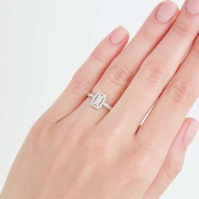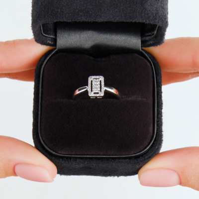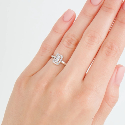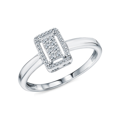 Кольцо с 8 бриллиантами природными, 0.05 карат, огранка круг 57 граней, цвет 3, чистота 6, тип огранки А; 26 бриллиантами природными, 0.04 карат, огранка круг 17 граней, цвет 2, чистота 3, тип огранки А; Белое золото 585 пробы.