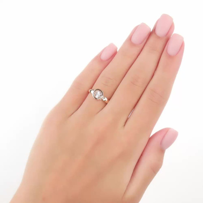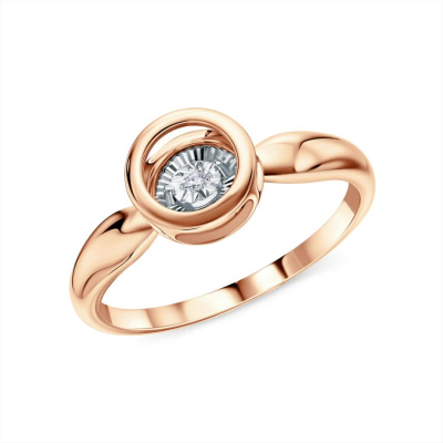 Кольцо с 1 бриллиантом природным, 0.008 карат, огранка круг 57 граней, цвет 4, чистота 5, тип огранки А; Розовое и белое золото 585 пробы.