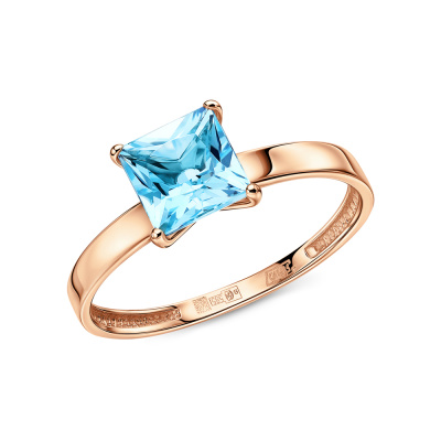 Кольцо с 1 топазом скай природным, 1.39 карат; Розовое золото 585 пробы.