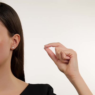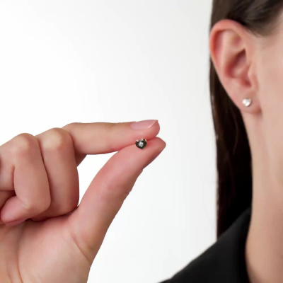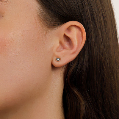 Серьги с 2 бриллиантами природными, 0.04 карат, огранка круг 57 граней, цвет 3, чистота 6, тип огранки А; силикон; Розовое и белое золото 585 пробы.