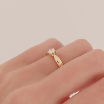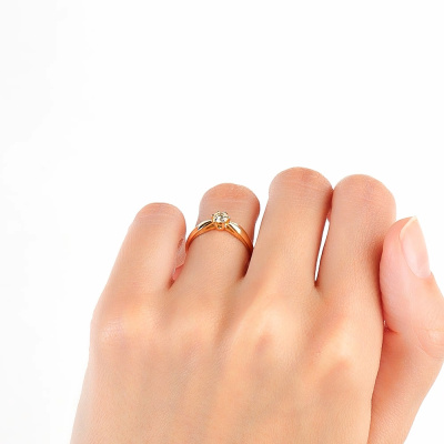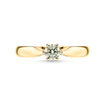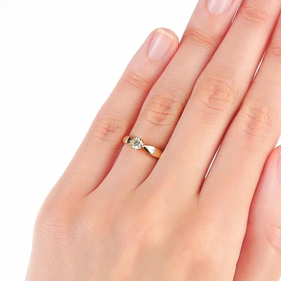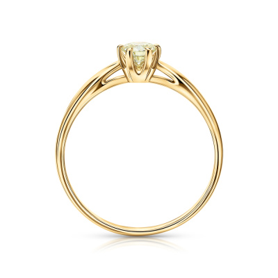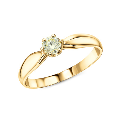 Кольцо с 1 бриллиантом желтым природным, 0.22 карат, огранка круг 57 граней, цвет 5, чистота 6, тип огранки А; Желтое золото 585 пробы.
