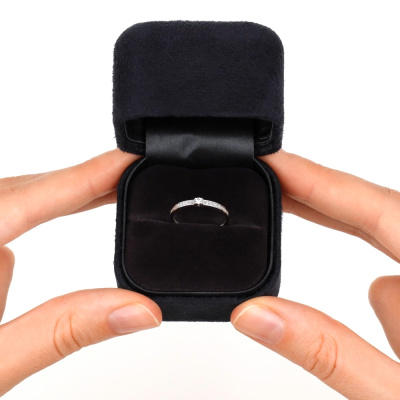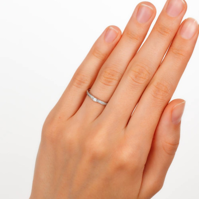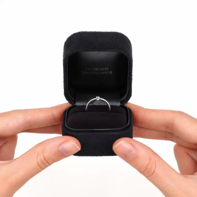 Кольцо с 1 бриллиантом природным, 0.03 карат, огранка круг 57 граней, цвет 3, чистота 6, тип огранки А; 18 бриллиантами природными, 0.05 карат, огранка круг 17 граней, цвет 2, чистота 2, тип огранки А; Белое золото 585 пробы.