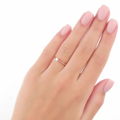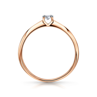 Кольцо с 1 бриллиантом природным, 0.1 карат, огранка круг 57 граней, цвет 4, чистота 5, тип огранки А; Розовое золото 585 пробы.