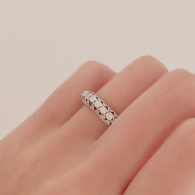 Кольцо с 28 бриллиантами природными, 0.13 карат, огранка круг 17 граней, цвет 2, чистота 2, тип огранки А; Розовое и белое золото 585 пробы.