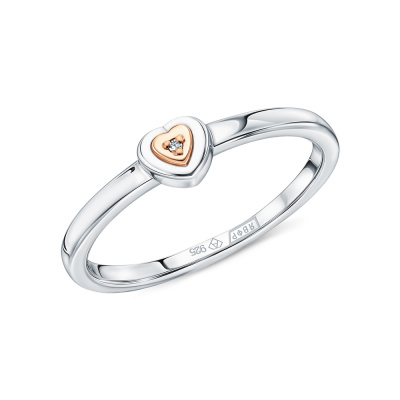 Кольцо с 1 бриллиантом природным, 0.003 карат, огранка круг 17 граней, цвет 3, чистота 3, тип огранки Б; Серебро 925 пробы.