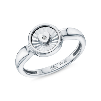 Кольцо с 1 бриллиантом природным, 0.004 карат, огранка круг 17 граней, цвет 3, чистота 3, тип огранки Б; Серебро 925 пробы.