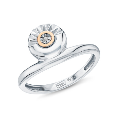 Кольцо с 1 бриллиантом природным, 0.004 карат, огранка круг 17 граней, цвет 3, чистота 3, тип огранки Б; Серебро 925 пробы.
