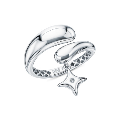 Кольцо с 1 бриллиантом природным, 0.004 карат, огранка круг 17 граней, цвет 3, чистота 3, тип огранки Б; Серебро 925 пробы.