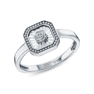Кольцо с 1 бриллиантом природным, 0.004 карат, огранка круг 17 граней, цвет 3, чистота 3, тип огранки Б; Серебро 925 пробы.