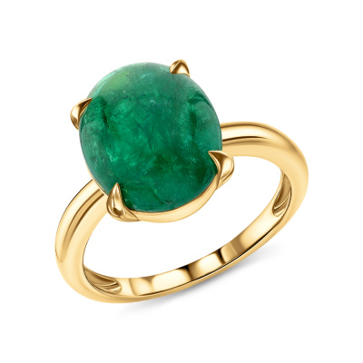 Кольцо с 1 изумрудом природным, 5.83 карат, цвет 2, чистота 3, тип огранки Б; Желтое золото 585 пробы.