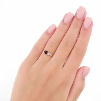Кольцо с 6 бриллиантами природными, 0.02 карат, огранка круг 17 граней, цвет 2, чистота 2, тип огранки А; 1 гранатом природным, 0.52 карат; Розовое золото 585 пробы.