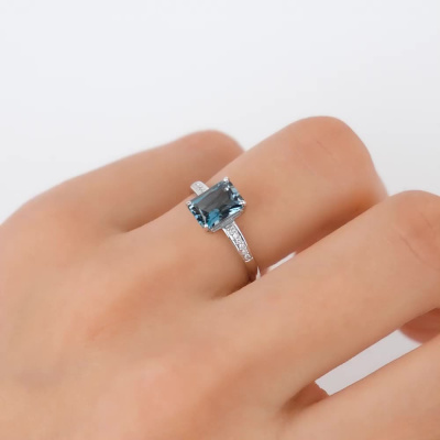 Кольцо с 12 бриллиантами природными, 0.03 карат, огранка круг 17 граней, цвет 2, чистота 2, тип огранки А; 1 топазом лондон природным, 1.81 карат; Белое золото 585 пробы.