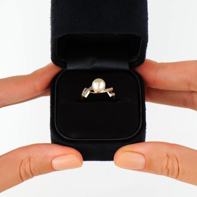 Золотое кольцо с бриллиантами природными и жемчугом