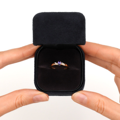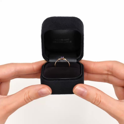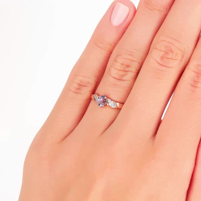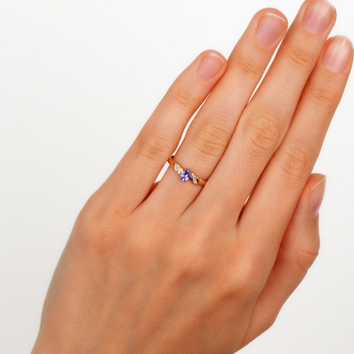 Кольцо с 6 бриллиантами природными, 0.02 карат, огранка круг 17 граней, цвет 2, чистота 2, тип огранки А; 1 танзанитом природным, 0.24 карат; Розовое золото 585 пробы.