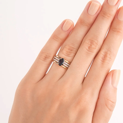 Золотое кольцо с бриллиантами природными и гранатами природными