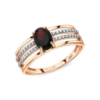 Кольцо с 36 бриллиантами природными, 0.09 карат, огранка круг 17 граней, цвет 2, чистота 2, тип огранки А; 1 гранатом природным, 0.92 карат; Розовое золото 585 пробы.