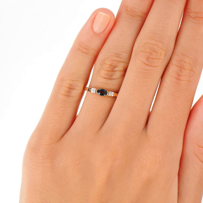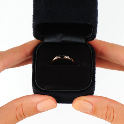 Кольцо с 8 бриллиантами природными, 0.03 карат, огранка круг 17 граней, цвет 2, чистота 2, тип огранки А; 1 топазом лондон природным, 0.29 карат; Розовое золото 585 пробы.