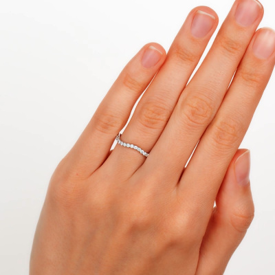Кольцо с 21 бриллиантом природным, 0.29 карат, огранка круг 57 граней, цвет 3, чистота 6, тип огранки А; Белое золото 585 пробы.