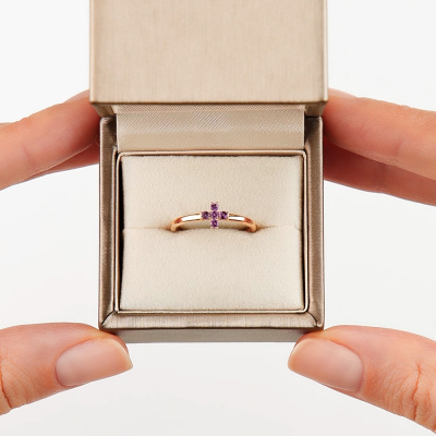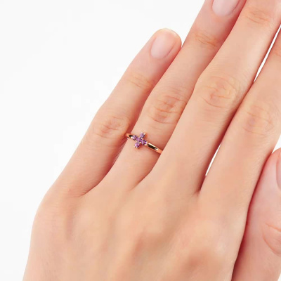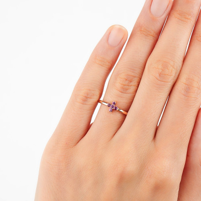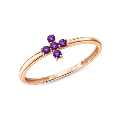 Кольцо с 5 аметистами природными, 0.1 карат; Розовое золото 375 пробы.