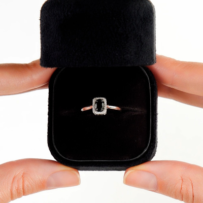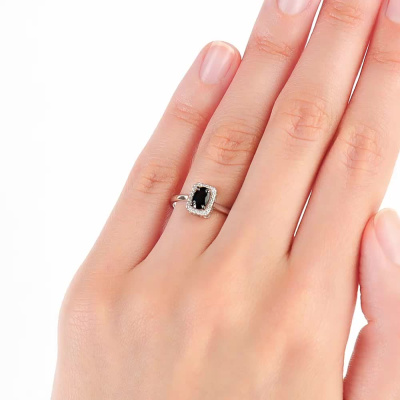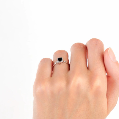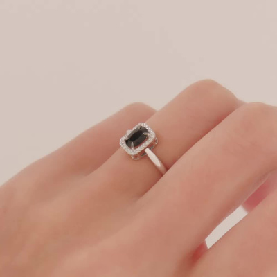 Кольцо с 24 бриллиантами природными, 0.04 карат, огранка круг 17 граней, цвет 2, чистота 2, тип огранки А; 1 сапфиром природным, 0.52 карат, цвет 2, чистота 2, тип огранки Б; Белое золото 585 пробы.