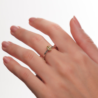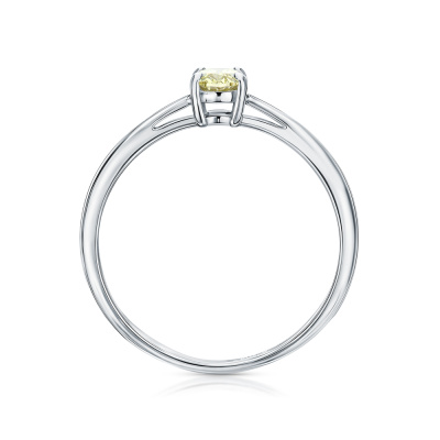 Кольцо с 1 бриллиантом выращенным, 0.39 карат, огранка овал 57 граней, цвет Желтый, чистота 5, тип огранки А; Белое золото 585 пробы.