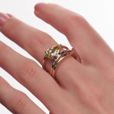 Кольцо с 1 бриллиантом выращенным, 2.07 карат, огранка груша 56 граней, цвет Желтый, чистота 5, тип огранки А; Желтое золото 585 пробы.