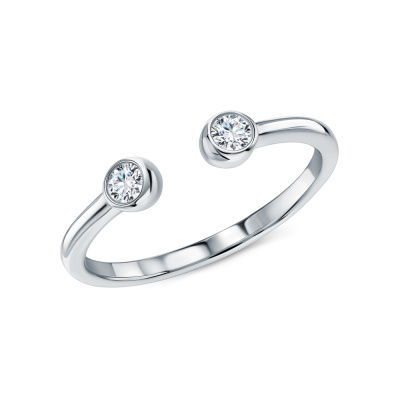 Кольцо с 2 бриллиантами выращенными, 0.13 карат, огранка круг 57 граней, цвет 3, чистота 5; Серебро 925 пробы.