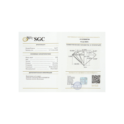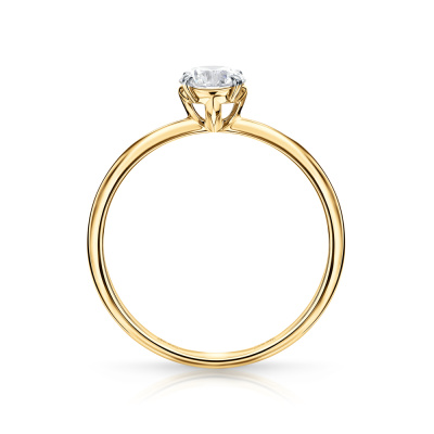 Кольцо с 1 бриллиантом природным, 0.51 карат, огранка круг 57 граней, цвет 2, чистота 6, тип огранки А; Желтое золото 585 пробы.