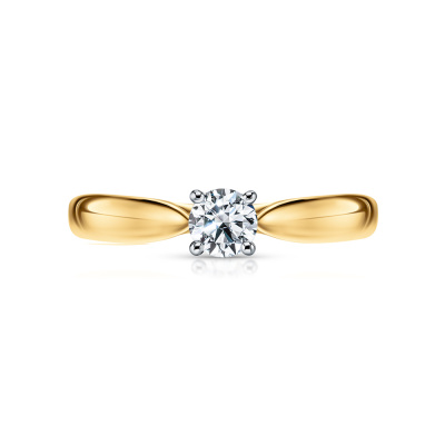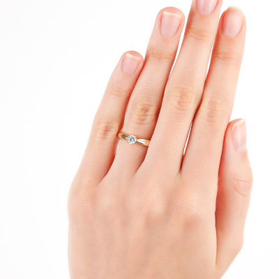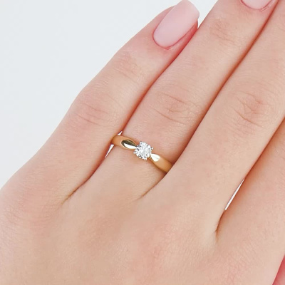 Кольцо с 1 бриллиантом природным, 0.28 карат, огранка круг 57 граней, цвет 3, чистота 6, тип огранки А; Желтое золото 585 пробы.