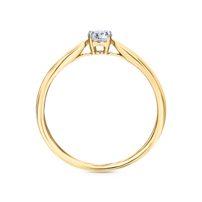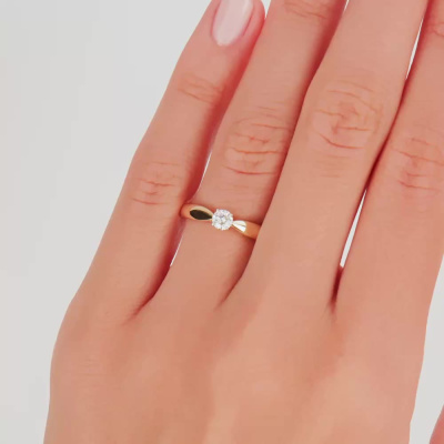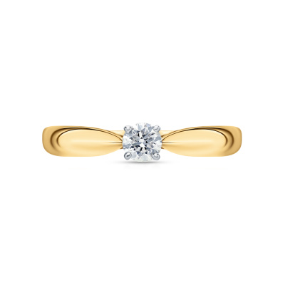 Кольцо с 1 бриллиантом природным, 0.19 карат, огранка круг 57 граней, цвет 3, чистота 6, тип огранки А; Желтое золото 585 пробы.