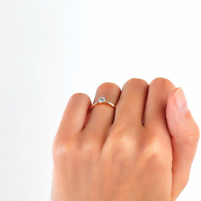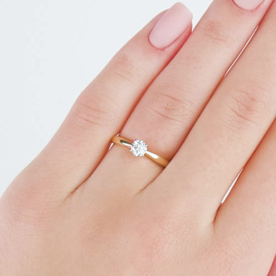 Кольцо с 1 бриллиантом природным, 0.3 карат, огранка круг 57 граней, цвет 3, чистота 6, тип огранки А; Желтое золото 585 пробы.