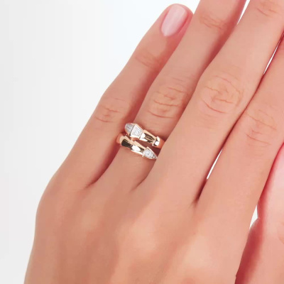 Кольцо с 2 бриллиантами природными, 0.03 карат, огранка круг 57 граней, цвет 3, чистота 6, тип огранки А; 2 бриллиантами природными, 0.02 карат, огранка круг 57 граней, цвет 3, чистота 6, тип огранки А; 1 бриллиантом природным, 0.008 карат, огранка круг 57 граней, цвет 3, чистота 6, тип огранки А; 1 бриллиантом природным, 0.004 карат, огранка круг 17 граней, цвет 2, чистота 2, тип огранки А; Розовое золото 585 пробы.